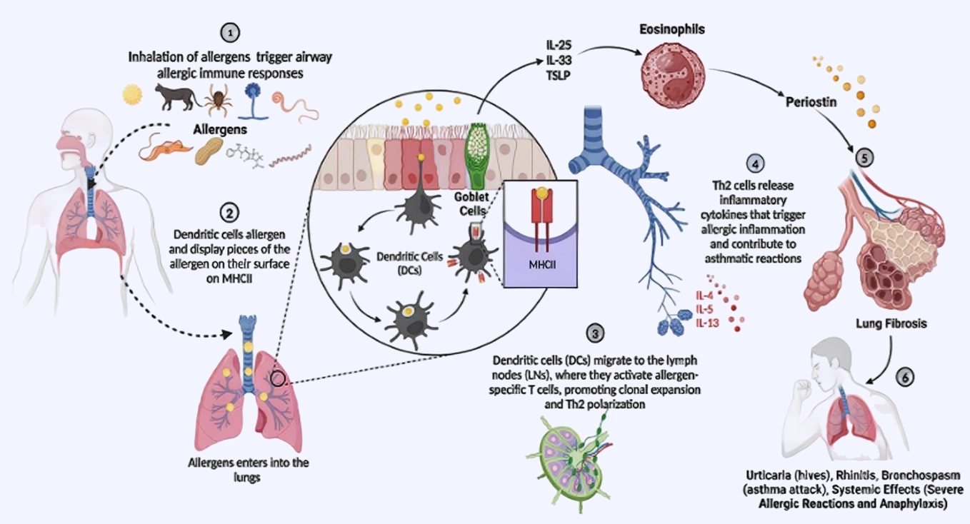 Figure 1. Schematic representation of the pathologic immune response in the airways. Source: Proinflammatory Cytokines in Chronic Respiratory Diseases and Their Management (2025).